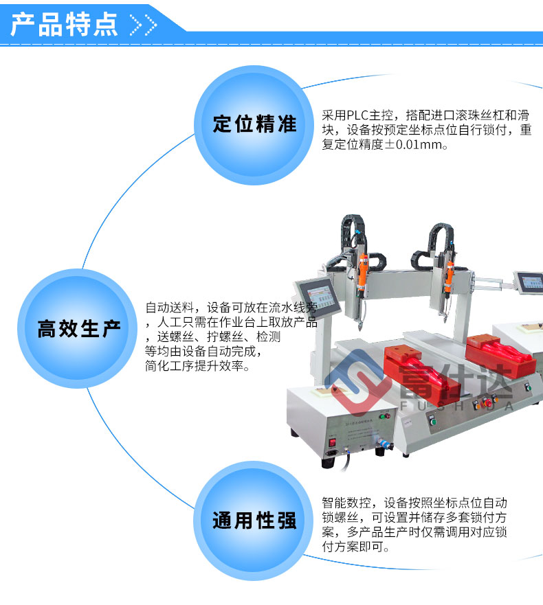 富仕達自動鎖螺絲機尺寸可根據產品尺寸大小及生產線情況來設計,定制真正好用的自動鎖螺絲設備。