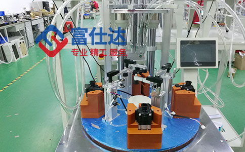 隔膜水泵是輸送液體或使液體增壓的機械。它將原動機的機械能或其他外部能量傳送給液體,使液體能量增加。該水泵由多個配件組成,該案例產品上用5顆長螺絲緊固,根據客戶產品的特點及客戶的需求采用了多軸轉臺式自動鎖螺絲機。